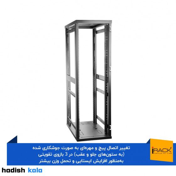 از ویژگیهای مهم این رک، وجود فضای اختصاصی برای نصب پنل توزیع برق به صورت Zero Unit و یونیت مخفی برای پنل روشنایی است که بدون اشغال فضای مفید داخلی، امکان استفاده بهینه از رک را فراهم میکند. پنلهای جانبی دو لنگه، درهای پشتی دو لنگه با قفل طرح ریتالی، و دستگیره آلومینیومی سراسری جلوهای زیبا و کاربردی به این محصول بخشیدهاند.